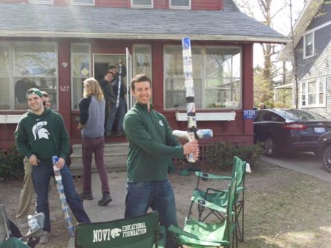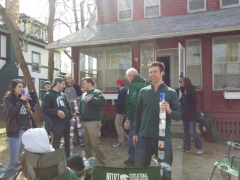 They explained that the things they carried were Wizard Staffs, and that they believed they had invented them. For reasons having to do with graduating and looking for jobs, they were willing to be photographed but not to have their names in an online story about drinking enough beer to make a four or five foot “staff.” I agreed to let them be anonymous in exchange for the scoop.