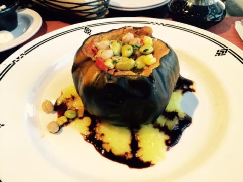 The soup was indeed warming, but when my companion’s squash arrived I experienced severe and protracted plate-envy. The little acorn squash was sort of plump and cute, with vegetables and sauce literally busting out like a cornucopia. Selfishly, she proceeded to eat her own lunch in front of me. This merely strengthened my resolve to return for my own squash, along with maybe some chicken salad, a lobster tostada and some dessert.