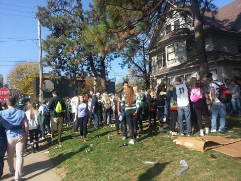 Students appeared in everything from a skintight, Spartan green onesie to an outfit comprised of a tank top and what seemed to be a green and white striped beach towel. There are not many places outside of large cities where you can sit on your own front porch and see things like that while receiving offers of pulled pork barbecue, cigars and beer in a plastic cup.