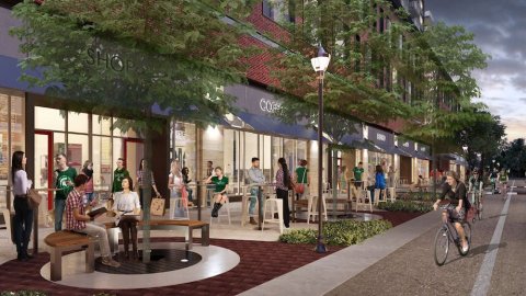 Councilmembers also expressed enthusiasm for having a new parking garage on Lot 1 and for the redo of Albert Avenue. The design for that space, shown above, includes wide sidewalks with planters, benches, and the like. It also includes a large amount of public infrastructure reconstruction.