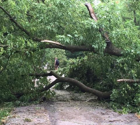 Above: tree damage from Friday’s storm along East Lansing’s Northern Tier Trail