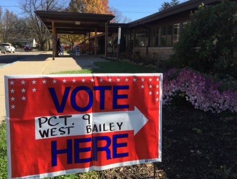 Above: A precinct sign at Edgewood United Church in a photo taken last year