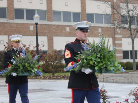On Friday, the City of East Lansing held its annual observance of Veterans' Day at the Hannah Community Center. The event began with a few words from Deputy City Manager Tim Dempsey and continued with formal laying of wreaths.