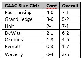 East Lansing, 7-1 overall and 4-0 in the CAAC Blue, returns home Friday to host Grand Ledge (5-2 overall, 3-0 CAAC Blue) at 6 p.m. Friday.