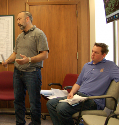 Below: Developers Paul Vlahakis (left) and Mike O'Callaghan at the June 25 DDA meeting.