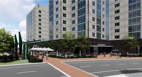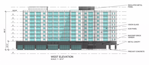 In are plans for just one building called “Park Place West,” only on the DDA properties, coming in at a total of 10 stories. Park Place West is designed to have 23,000 square feet of ground-floor retail space, 138 market-rate rental apartments, 46 additional rental apartments restricted to people with moderate income, and a top-floor fitness room for residents.