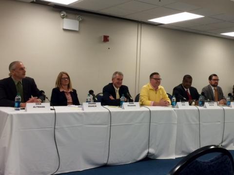 The candidates are Erik Altmann, Shanna Draheim, Mark Meadows, Steve Ross, Jermaine Ruffin and Nathan Triplett. The Forum’s format allowed each of the six candidates an opening statement after which they were all asked to answer audience questions and allowed a one-minute closing statement. The order of presentation was based on drawing numbers.