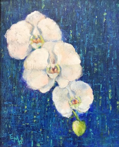 Above: “Orchid Trio,” work in acrylic by Elaine Dobrowolski