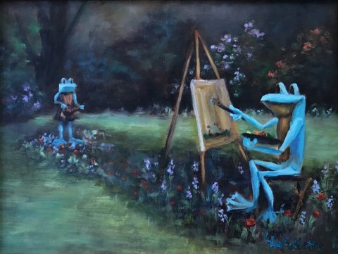 Below: Ribbits at Dow Gardens, work in oil by Lily LaFollette.