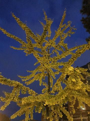 Here's a photo taken the night of October 28, 2015, of a ginko near MSU's Eli Broad Museum.
