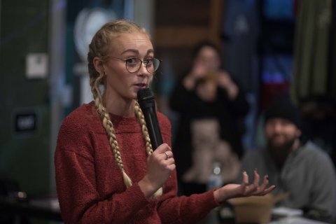 Nicole Melnyk is one of several young comedians who performed recently at Ellison Brewery’s open mic comedy night.