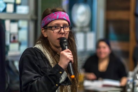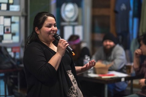 Comedian Tiffany Aikens performs at Ellison Brewery during a recent Lansing Comedy Sirens open mic night. (Photos by Raymond Holt)