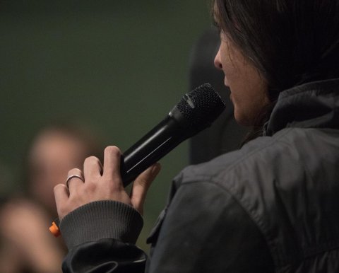 Co-host Ashley Stommen, one-half of the Lansing Comedy Sirens duo.