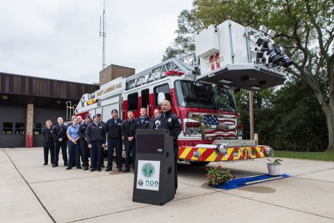 Community members and City officials gathered Thursday at Fire Station 1, 1700 Abbot Road, at the dedication ceremony for the East Lansing Fire Department’s new ladder truck.