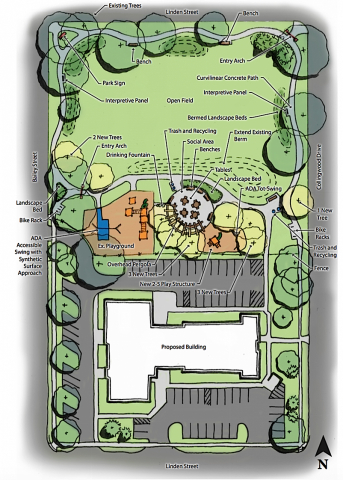 There will also be a new play structure for 2-5-year-olds added to the existing play structure currently on site. New landscaping is planned to be “pollinator friendly” and would include interpretive signs to serve as demonstration gardens for using natural landscaping in a suburban setting.
