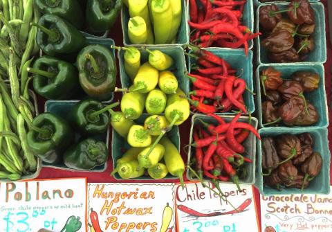 Image: Peppers for sale at Wildflower Eco Farm.