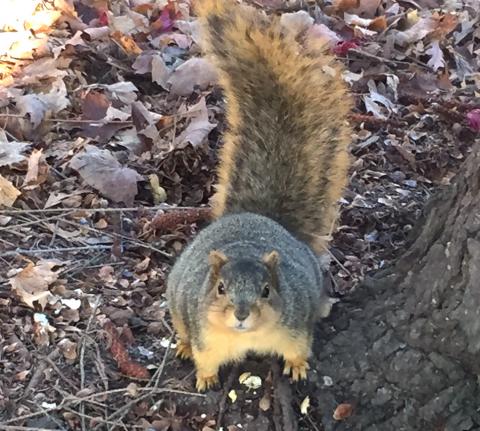 Above: An East Lansing squirrel who will not engage in hibernation or torpor but who has recently chubbed-up for winter.