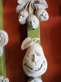 Mackerel Sky also has products made in Kalamazoo by weaver Nancy Crampton, including snowmen ornaments ($20) made from hand-spun and hand-dyed yarn. Crampton’s “fish toys for cats” ($8) are also available. These are made from hand-woven fabrics and filled with organic catnip. Small whimsical garden sculptures from Carruth Studios in Waterville, Ohio ($35 and up), can be hung indoors, including in sunrooms and kitchens.