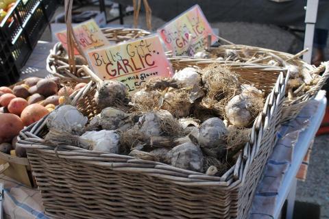 This Sunday, July 5th, Wildflower Eco Farm will likely be selling kale, collards, broccoli, Swiss chard, rhubarb, garlic scapes, new potatoes, cabbage, cucumbers, cilantro and basil. Throop (who is often a willing to provide ideas for using his produce) says his family “likes to stir fry garlic scapes, kale and potatoes with curry.”