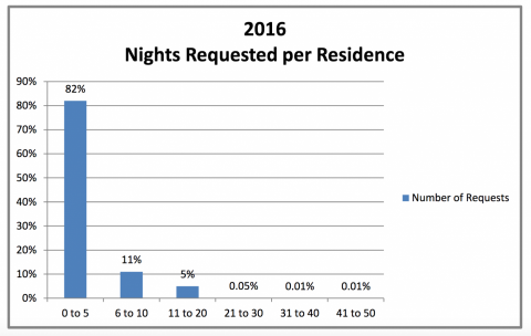 As shown in the following graph provided by City staff, most residences seeking overnight parking permission requested just a few nights’ accommodations.