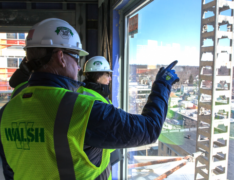 Above: Looking out from the interior of “The Abbot” during the topping-off tour in January (photo by Raymond Holt)