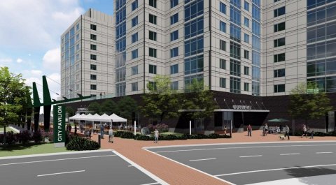 A “Park Place West” rendering from the back of Peoples Church that was submitted in July.