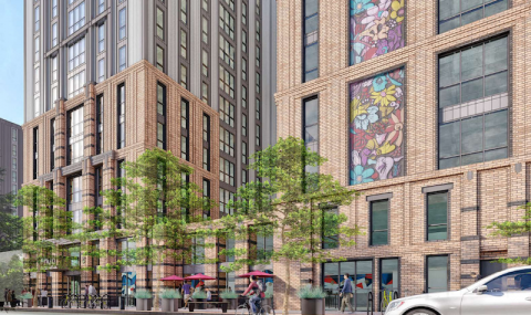 What Planning Commissioners did like about the Hub 2 design was the architectural look, so Core Spaces’ team has not changed that. The design is meant to evoke the classical elements of MSU’s collegiate architecture while also providing relatively modern streetscape feels, with light-filled lobbies and a welcoming, human scale on the ground level.