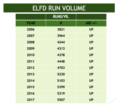“We could have a cascading kind of impact if you take units out of service and those units are ambulances,” he explained, “and then we lose the revenue that supports that, and [that] exacerbates the budget problem.” The EMS side of ELFD generates about $1.3 million in revenue from billing for ambulance runs.