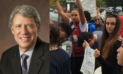 Above: Geoffrey Stone of the University of Chicago (left) and last year’s Black Lives Matter protest in East Lansing.