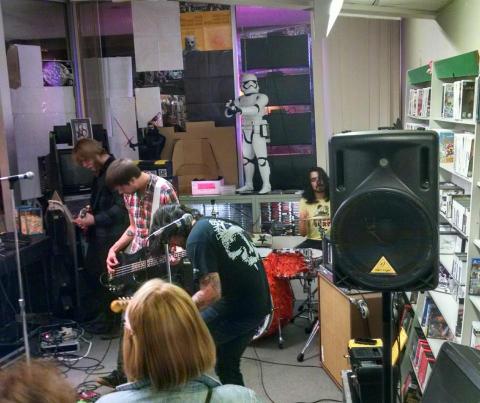 Bucking this trend, a home for live performances has been created at Replay Entertainment Exchange, a place to turn in your old video games, DVDs, unwanted vinyl, and more in exchange for cash or store credit. Replay has been hosting regular shows in-store at their Brookfield Plaza location since March. Last Wednesday night’s show featured Bike Tuff from Kalamazoo, Bong Mountain from Grand Rapids, and Lansing locals Worn Spirit and Little American Champ.