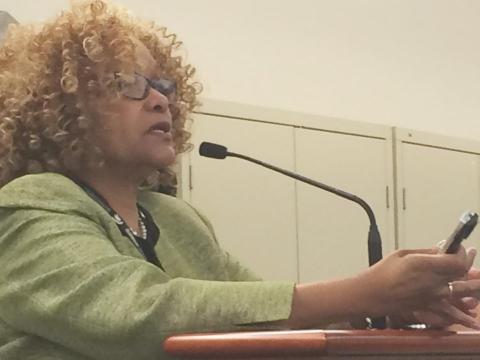 Superintendant Robyne Thompson speaks at last night's meeting