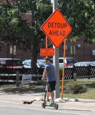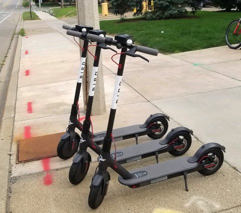 Below: Bird scooters parked on Abbot Road, photo by Ken Sperber.
