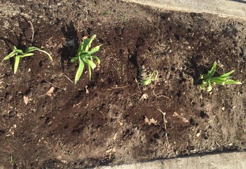 Now, here (below) is a parkway that will soon develop its own showy display of daylilies, which have the advantage of being low-maintenance perennials. Daylilies spread as a clump and guidebooks say you should divide them after they finish flowering in spring. In truth, they are pretty tough and you transplant them from spring to fall.