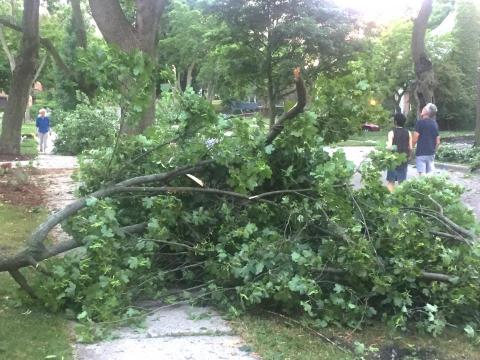 Curb-side pickup of storm debris: DPW will start picking up plant debris from the storm starting on Monday, July 11. According to the City today, “Residents with downed branches and limbs in their yards can place them curbside and the City will pick them up. Residents are asked not to place storm debris in the street or on sidewalks. The cleanup process is estimated to take a number of weeks, so patience with curbside pickup is appreciated.”