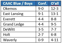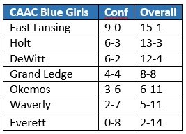 East Lansing, now 13-1 overall and 9-1 in the CAAC Blue, will face Okemos at home Tuesday in a game that could go a long way in determining the eventual league champion.