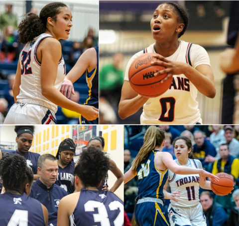 Despite making only 1 of its 14 field goal attempts from three-point range, the Trojans (now 22-1) relied on their strong defense to limit DeWitt to six points in the second half. East Lansing forced DeWitt into 19 turnovers and outrebounded the Panthers 35-18.