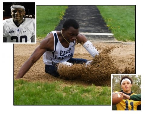 East Lansing seniors James Hosey (upper left), AJ Kirkland (middle) and Kobe Hayward (lower right) are three of the Trojan top performers slated for action today in the Greater Lansing Honor Roll Meet.