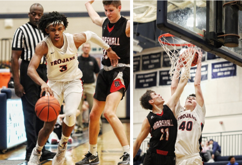 The East Lansing boys basketball team found that out the hard way last season but the Trojans have more than made up for it through six games without a home loss this year. Their 56-42 victory Tuesday night over Marshall was workmanlike and under control from the opening tip until late in the fourth quarter, as head coach Ray Mitchell rotated his lineup throughout all four quarters with various combinations that clicked both offensively and defensively.