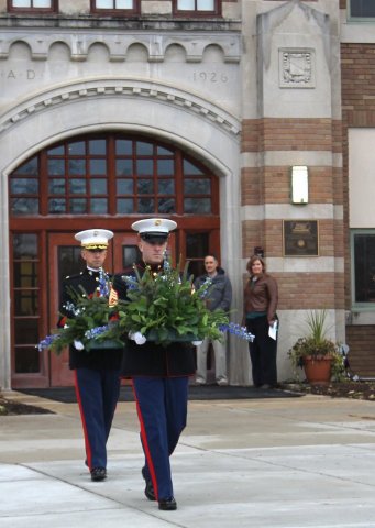 Photo: Marines at East Lansing's Veterans Day wreath-laying ceremony last November.
