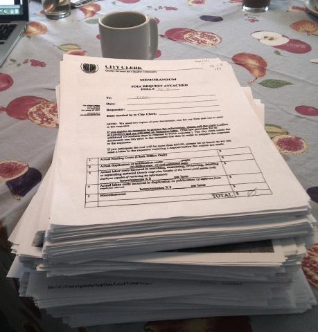 Alice Dreger obtained several inches worth of information using the Freedom of Information Act (see photo above), and spent literally days reading and organizing. (And, by the way, several inches of FOIA documents are not inexpensive. The stack cost ELi’s bank account $676.95, and we agonized for about a week before spending that much of the organization’s money on “buying” what amounted to a total unknown in terms of contents.) Alice turned this into a series of articles, first about the lawsuit (a piece I co-authored) and then about the mercury spill at the City’s Waste Water Treatment Plant. For each article, I provided a second pair of critical eyes before publication, nitpicking, challenging and double-checking.
