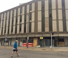 Demolition of the derelict “big bank building” started earlier than scheduled when, last night, a driver who may have been drunk plowed into the building. When is the real demo happening? We have the details.