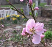 Above: The peach blossoms are also back (in the author's garden).