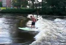 Above: Still from a video of a surfer on the Red Cedar River in 2008