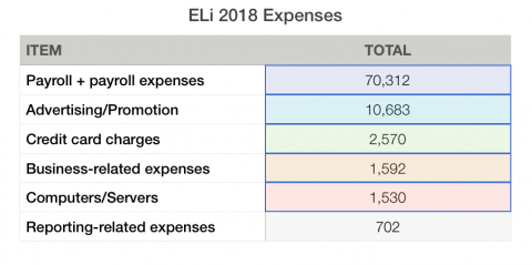 Today we bring you this report on our activities in 2018, including details on our income and expenses. We do this in part to remind you that no one owns ELi. While ELi is run by me as Publisher (functioning also as CEO) and Ann Nichols as Managing Editor, and is overseen by a voluntary Board of Directors, ELi belongs to this community.