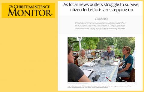 In 2018, work at ELi was featured in The Christian Science Monitor, the Lenfest Institute’s report on local news operations, the Poynter report on local news (twice), The Guardian (in a guest op-ed by me), and The Membership Puzzle Project’s report on news operations like ours that engage audiences in news production.