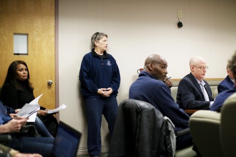 Above: Commissioner Liz Miller at Wednesday's meeting (photo by Gary Caldwell)
