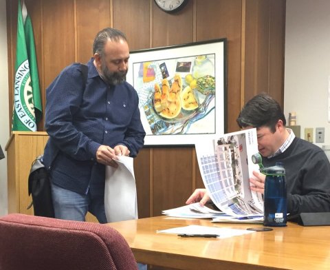 At the last DDA committee meeting, Vlahakis (above left) showed a new series of renderings to Dewan, Altmann, and City staff. But these plans have not been made available to the public or been submitted formally.