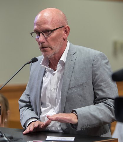 At the DDA, the developers’ attorney Brent Titus (below) shared a vision of having MSU’s School of Hospitality run tasting kitchens in the space, perhaps with food trucks on Evergreen Avenue.