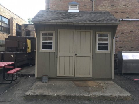 Some restaurant owners in the downtown area feel they need sheds to store items for their businesses outside of their main buildings. They store such things as empty beverage bottles for return, propane canisters, and grease—items for which there is either not enough space in their main buildings, for which there might be a fire hazard, or which attract vermin, including fruit flies. Some also use sheds to store grounds-keeping equipment, including snow removal equipment, like shovels and bags of salt.