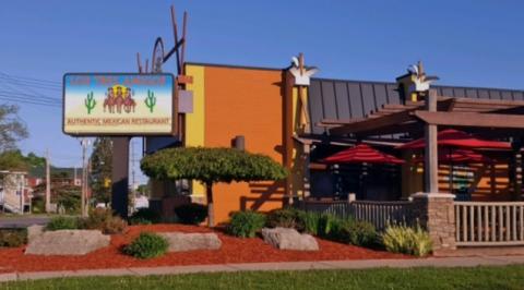 Los Tres Amigos is located at 1227 East Grand River Avenue, a quarter-mile west of Hagadorn Road, in East Lansing.